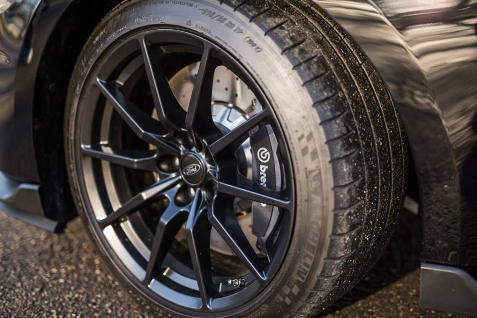 Compared to the standard Mustang GT, Shelby GT350 gets a flat-crank 5.2 liter V8, 6-speed Tremec transmission, Torsen limited-slip differential, and sport suspension with adjustable dampers plus 19-inch aluminum wheels, Brembo brakes and Michelin pilot Super Sport (295/35ZR19 and 305/35ZR19).