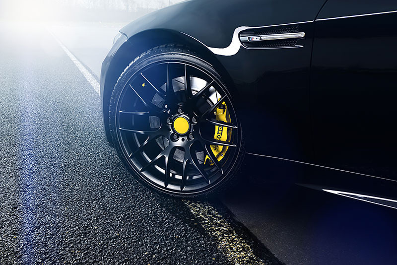 MR’s BMW M3 Clubsport gets a set of black coated lightweight forged wheels wrapped with Michelin Pilot Sport Cup tires in 245/35-19 on front and 265/35-19 on the rear axle. They work in tandem with a pair of spacers (10 mm on the front and 15 mm on rear axle), and KW variant 2 coilovers complete with H&R stabilizer kit and Stoptech braking system.
