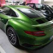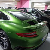 This Porsche 991 Turbo Facelift – which is actually the range-topping S version – is wearing a unique green paint job that is not on Porsche’s list of standard colors for this model. That means it’s an ‘Exclusive’ option and likely a very pricey one. Special paint jobs offered on the options list can cost you up to $3,600, so you can guess how much an Exclusive color is. The wheels this car is riding on are also optional, costing another three and a bit thousand dollars. This Turbo’s got to be the mostly nicely specced example in the world!