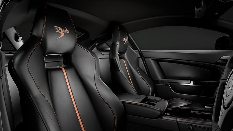 The Blades Vantage models come only as coupes and feature a silver paint job complemented with a black roof and orange accents on the front grille, rear hatch, and brake calipers. Needless to say, the livery is inspired by that of the stunt airplanes. Inside the cabin the dominant theme is black what with the leather upholstery and carbon trimming, but you will find some orange stitching and piping, plus The Blades logos embroidered onto the headrests.