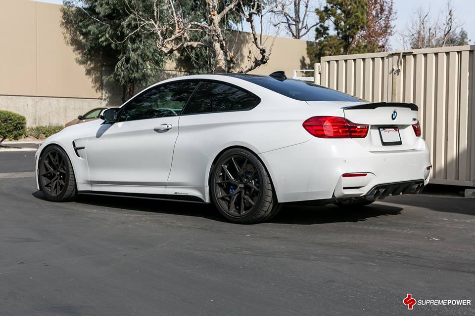 After doing a brilliant job with their grey M3 sedan, Supreme Power has now upgraded an Alpine White BMW M4 coupe with some of the best tuning parts available. The biggest highlight of this program is a set of Satin Black BBS wheels.