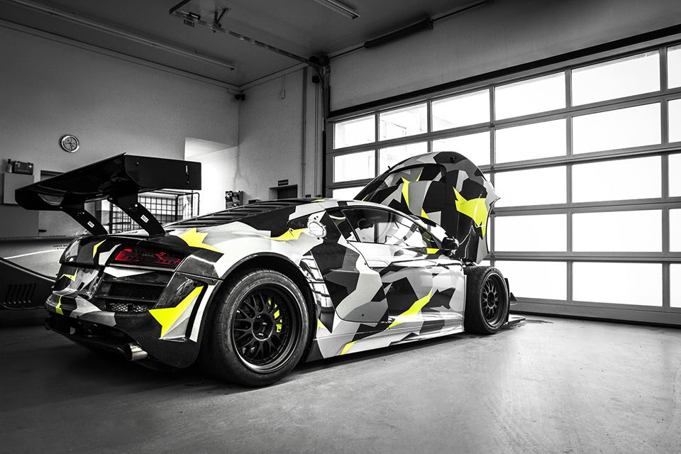You remember this Audi R8 GT3 LMS, dubbed Recon MC8, as the R8 thoroughly upgraded by the boys at Mcchip-DKR. As if the previous modifications, which converted a normal R8 V10 into a GT3 LMS track car, weren’t enough, the car has now been given a cool urban camo wrap.