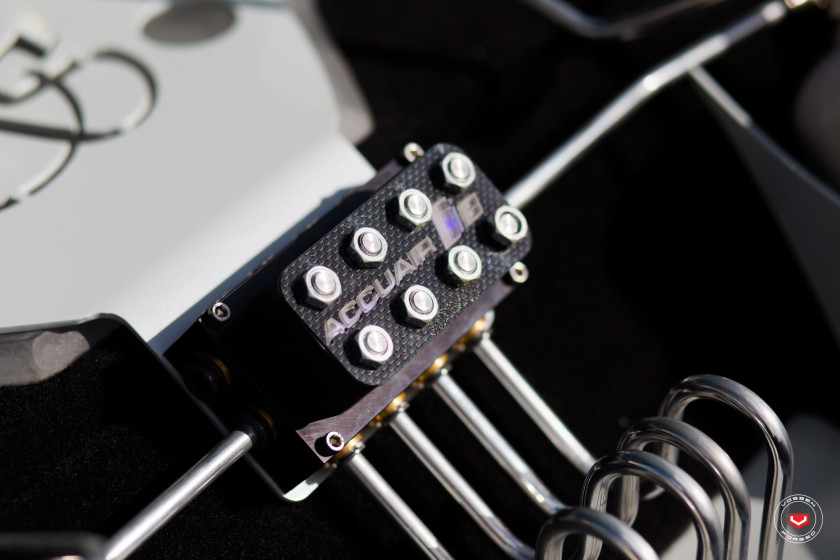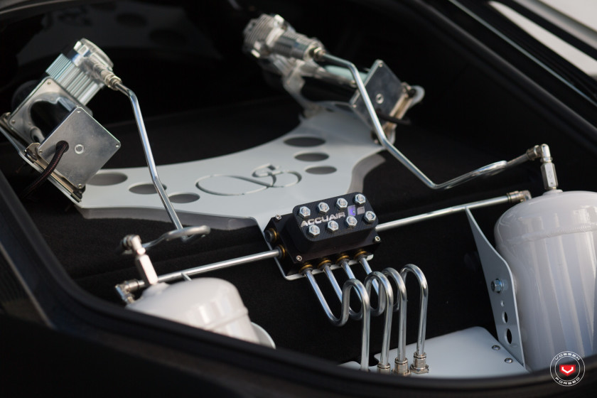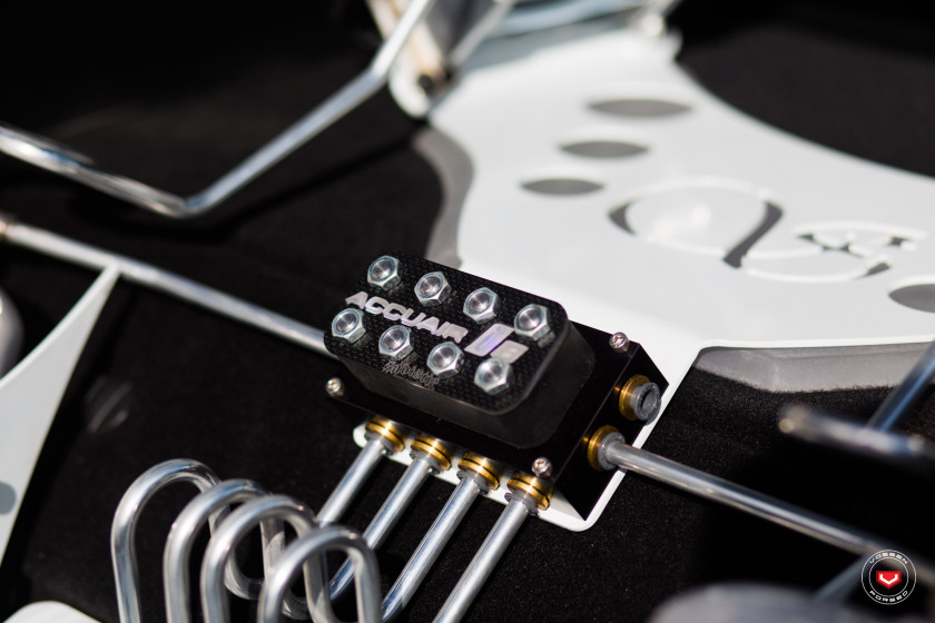 This thing gets the job done big time. This bagged BMW i8 is a work of art in many different ways, not the least of which is the super magnificent Accuair air suspension system with custom pipes and pumps fitted to a custom frame inside the car’s tiny boot. This car is the classiest low-low we’ve ever laid eyes on.