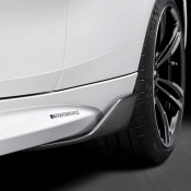 The main ingredients of BMW M2 M Performance Parts, besides the paint work and racing color accents and details, include matte black kidney grille, carbon fiber front splitter, carbon side skirts, carbon rear diffuser with integrated 93mm tailpipes, carbon mirror caps, and a cool carbon fiber boot lid spoiler. These parts would look great on a regular M2, but we have to say when yo pair them those graphics, they look a bit dorky.