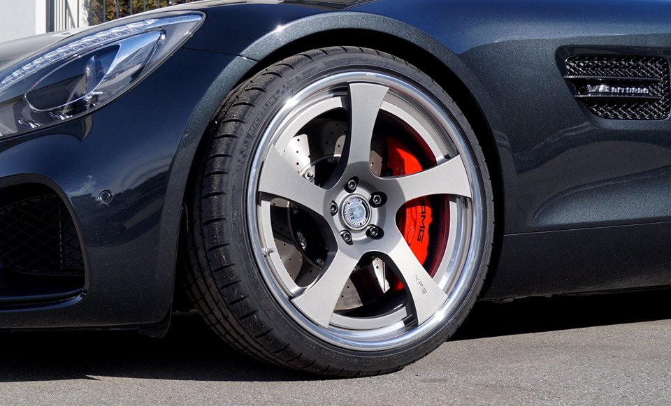 Cartech Mercedes AMG GT features a set of vintage-looking HRE RS105 rims in satin charcoal, measuring 10×20 inch with Michelin 265/30-20 tires up front and 12×21 inch with Michelin 305/25-21 tires out back. This setup seems to be the perfect wheel size combo for the GT, although we shouldn’t forget the KW threaded suspension system plays in the whole thing.