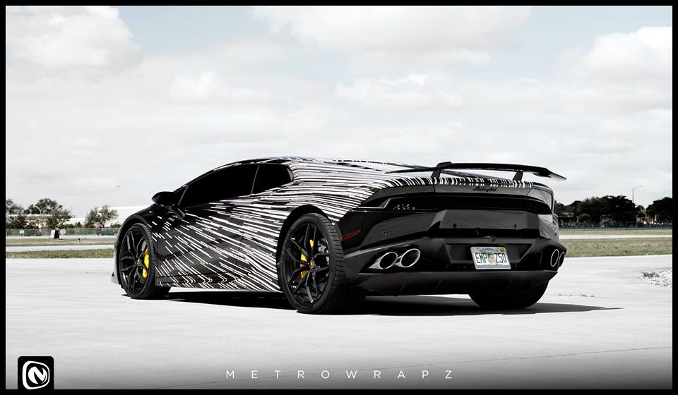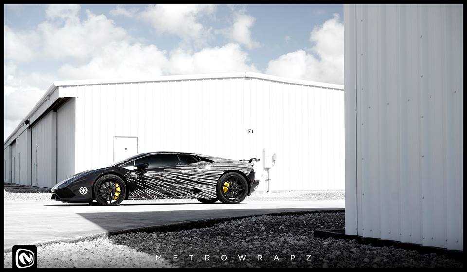 So yesterday we showed you a Lamborghini Gallardo with a Blue Chrome wrap, and now – just to balance things out – here’s a Huracan wrapped a unique design the like of which has never been seen before. Lamborghini Huracan Darth Vader wrap is done by Metro Wrapz of Florida.