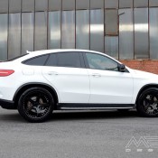 The wheels adorning MEC’s Mercedes GLE Coupe are the firm’s sporty CC3 forged meCCon Series models, finished here in gloss black. They measure 10,5 x 22 inch on the front axle wrapped with 285 section tires, and 12 x 22 inch on the rear axle shod with massive 325 section tires. In order to make the wheels really pop inside the fenders, the tuner has adjusted the car’s stock suspension and lowered the ride height by 20mm.