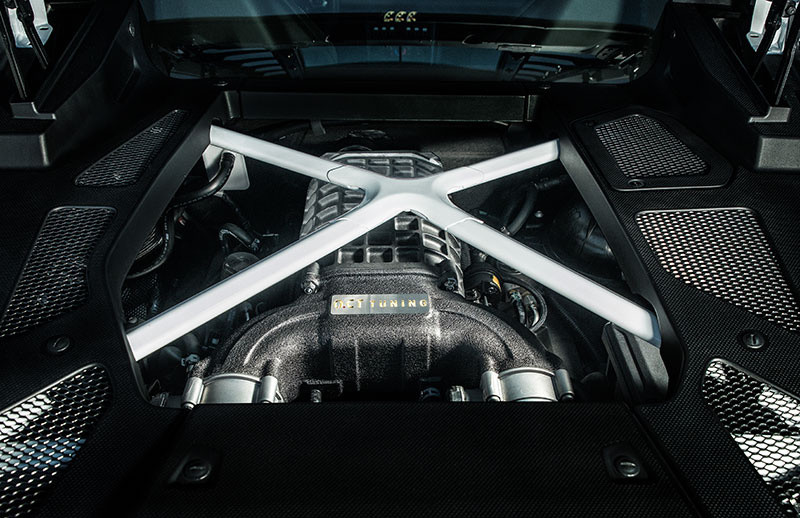 The O.CT800 kit fitted to O.CT Tuning Lamborghini Huracan consist of a meaty supercharger unit complete with software and a sport exhaust system to make the most of the upgrades. The exhaust is also 20 kg lighter than the stock unit. The direct result of the extra oomph is mind-bending performance: 0 to 100 km/h in 2.5 seconds, 0 to 200 km/h in 8.3 seconds, and a top speed of over 325 km/h or 200 mph.