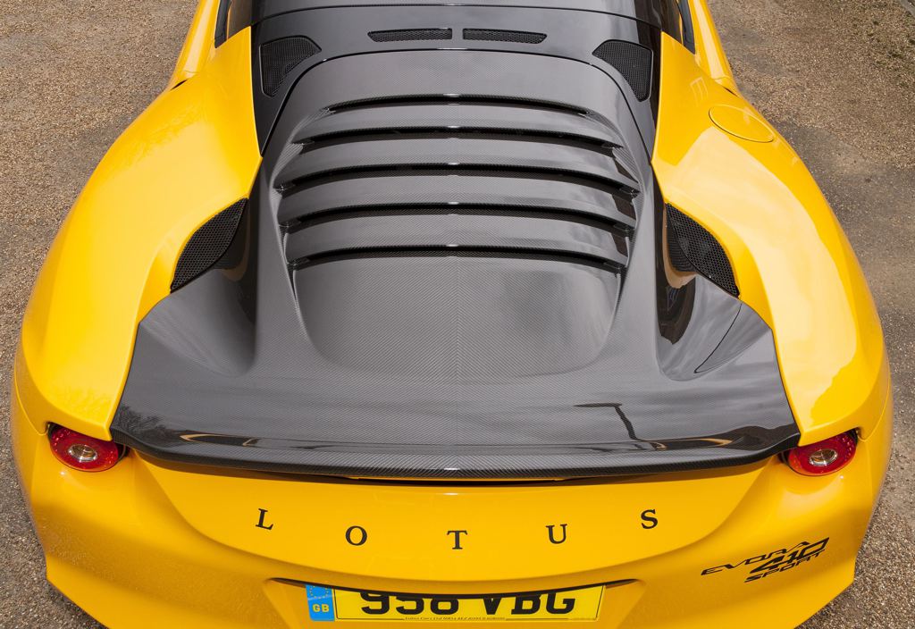 The main differences between a Lotus Evora Sport 410 and the regular version, in terms of looks as well as weight saving measures, include a carbon fibre tailgate (combining five separate elements into one), new lighter-weight door trim panels and the liberal addition of carbon fibre across the entire car. But this doesn’t mean the 410 is a stripped-out track car. The car is still very civilized for road use.