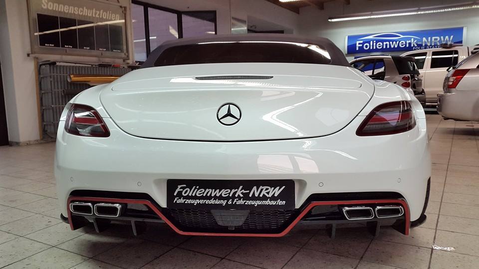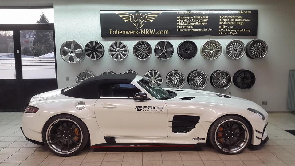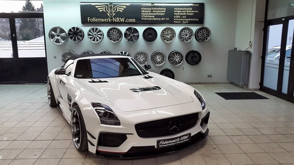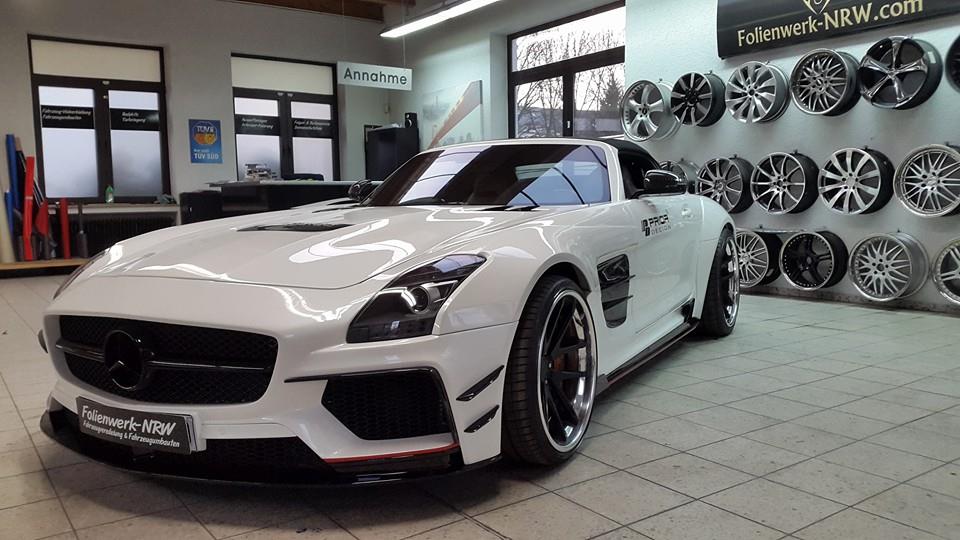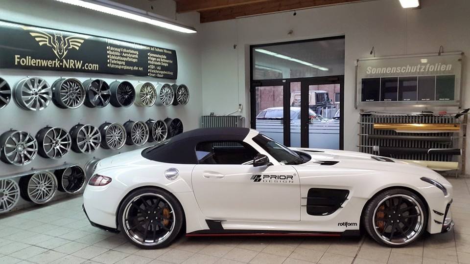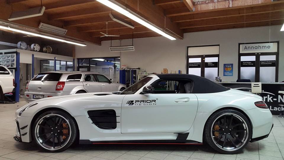 Most of you are familiar with Prior Design Mercedes SLS PD900GT wide body styling kit, because it was only one of the sickest kits released for the old German super car in its time. But what we have here is a custom version of that kit installed on a Roadster SLS. Now that’s pretty unique.