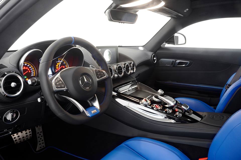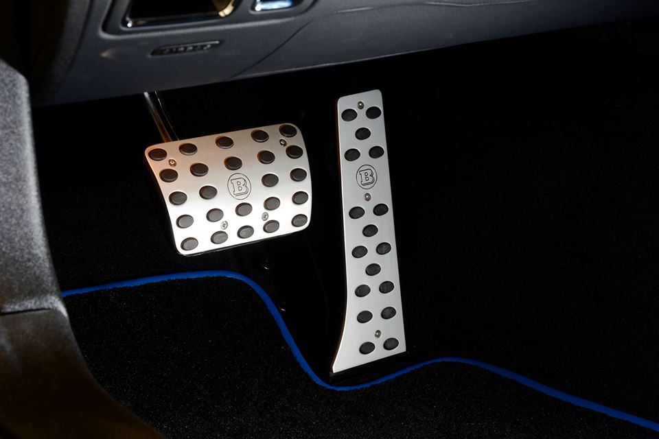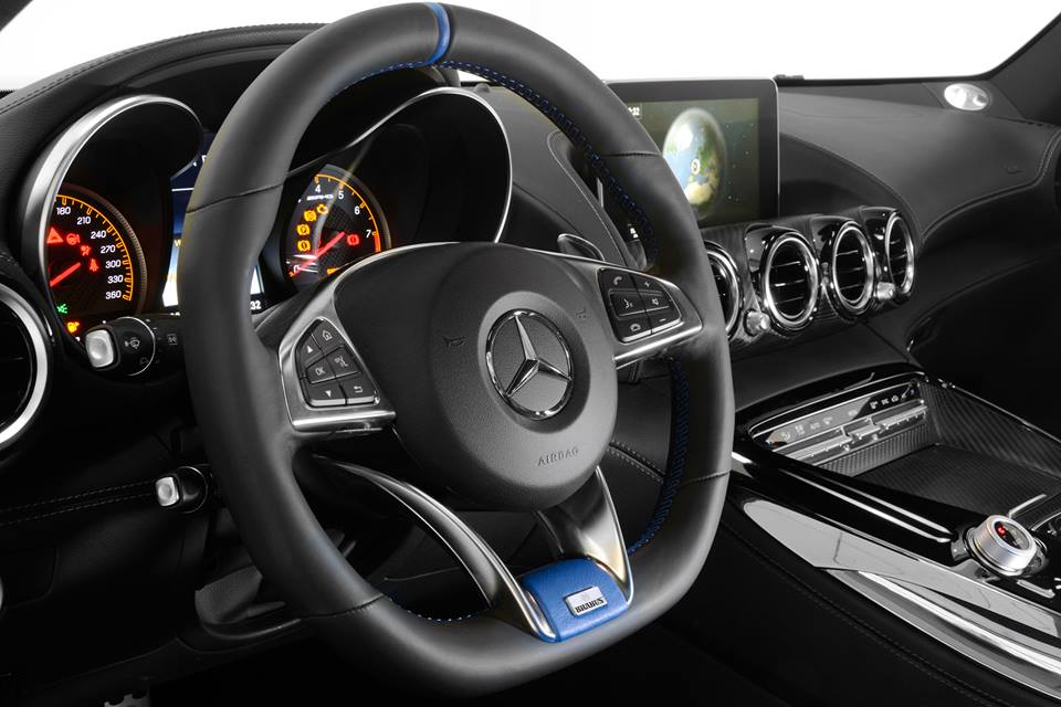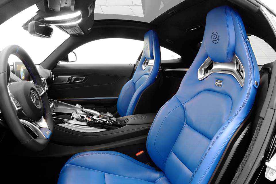 But the best thing about this particular Brabus Mercedes AMG GT, for our money, is the interior. Besides all the usual good stuff – like all the gadgets, glass roof, and spot-on driving position – this car benefits from sumptuous blue leather upholstery and accents, sport pedals, and illuminated Brabus side sills as well as branded floor mats.