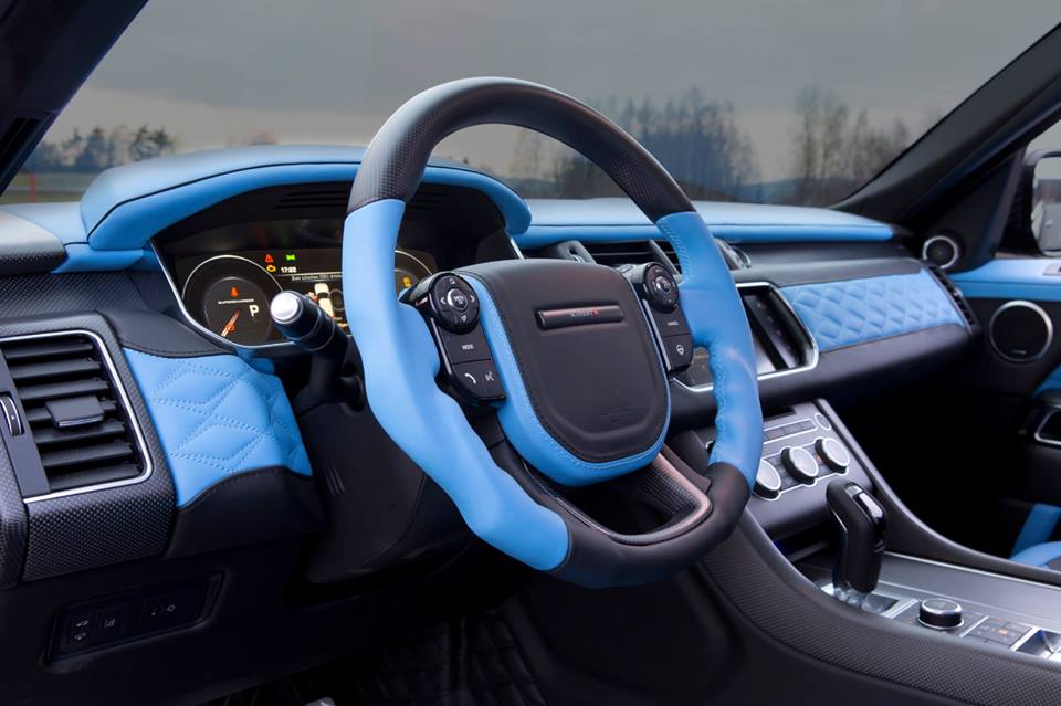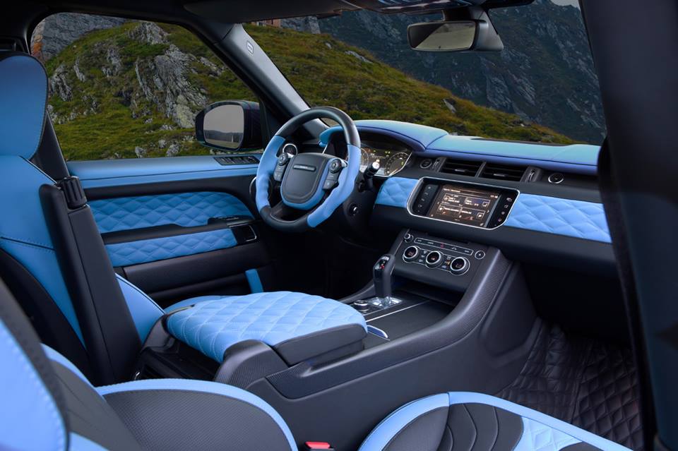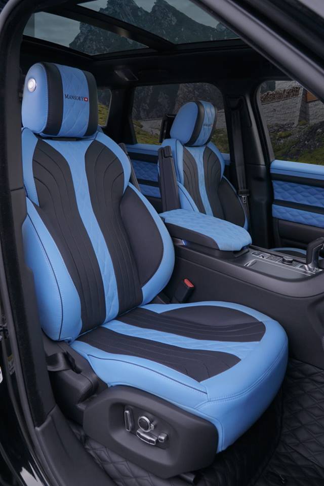 Mansory Range Rover Sport SVR can be ordered with a wide range of striking 22“ or 23“ inch light allow wheels for greater looks and performance. As mentioned, the engine in this car remain in standard from which means it has 550 horsepower. By any standards, that is enough power in a big, high-riding off-roader. You do, however, get a custom interior treatment which in the case of this car includes a healthy dose of diamond-stitched baby blue leather!