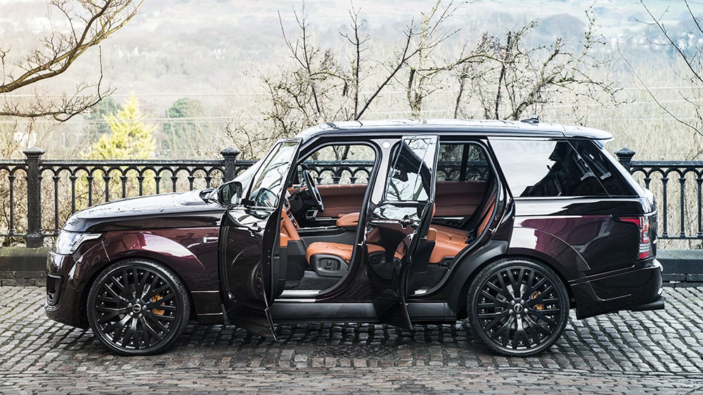 Priced at £89,975, this unique SUV also features an interior treatment with Kahn Bridge of Weir Leather upholstery combined with quilted and perforated Burnt Orange leather, stainless steel door entry sill plates, and aluminum sport pedals.