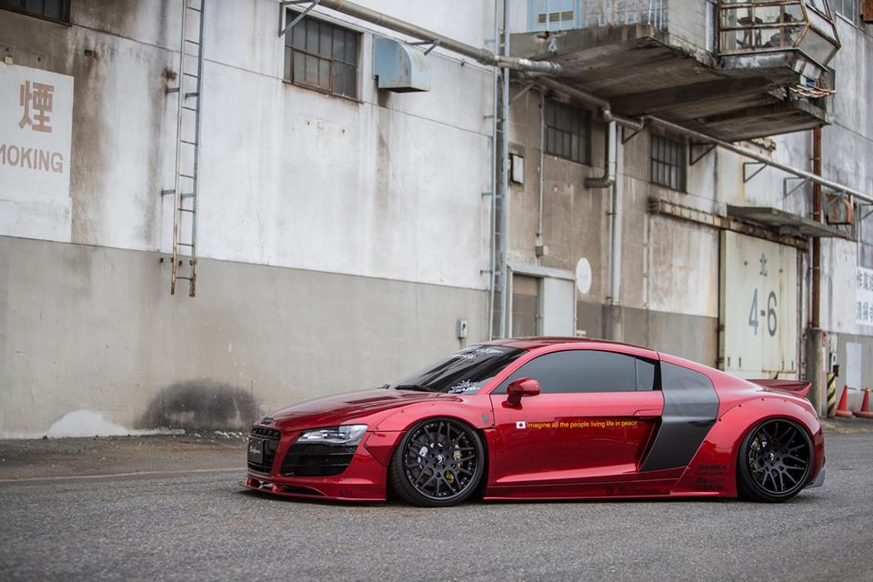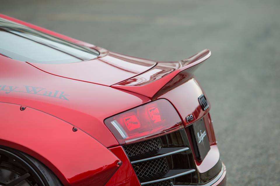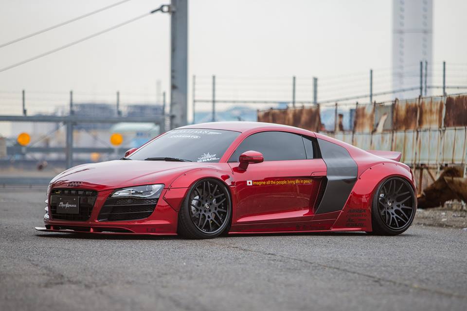 So as far as how many f*cks are given by this Liberty Walk Audi R8 to prestige and class and all that, the number is a solid zero. Everything about this car, from the massively wide fenders, to the wheels, to the shiny wrap, is designed to attract attention and turn necks. And it manages to do that perfectly.