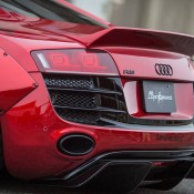 Liberty Walk Audi R8, like other LB-Performance kits, features a number of exclusively designed part including bolt-on fenders with visible bolt apparatus, massive front splitter and rear diffuser, side skirts, and ducktail rear spoiler. You could also have revised bumpers if you want, but the car’s plenty ostentatious as it is.