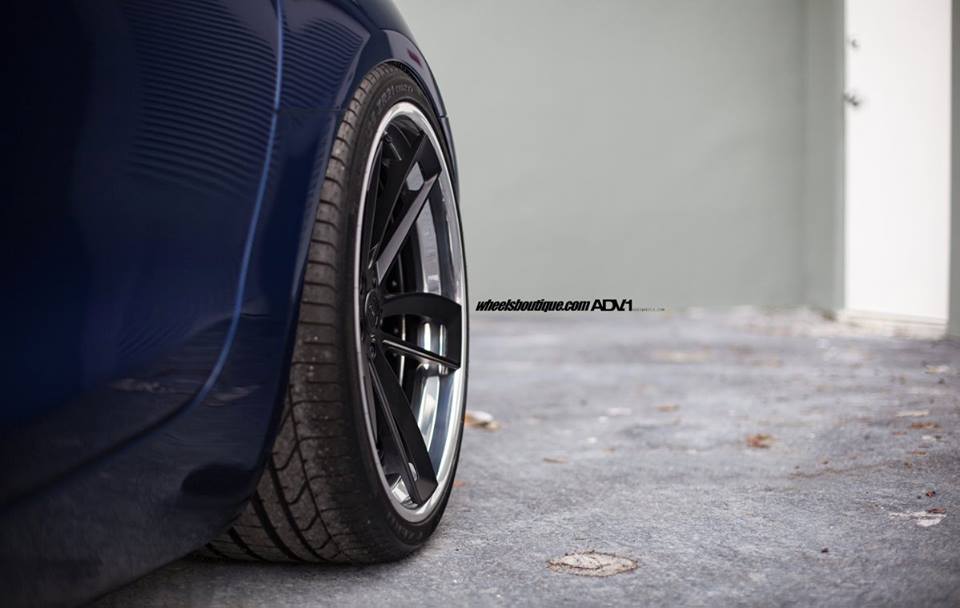 The wheels on this bad boy are ADVRSQ2 Track Spec CS Series in gloss black with polished lips, complemented with lowered suspension and red brake calipers. Enjoy the pictures: