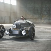 Nope, this is not a probe car from the next Mad Max movie. It’s a new version of the Morgan three-wheeler powered by an electric motor, called Morgan EV3. And it’s a production model, believe it or not, and no, it doesn’t have wood in it like regular Morgans.
