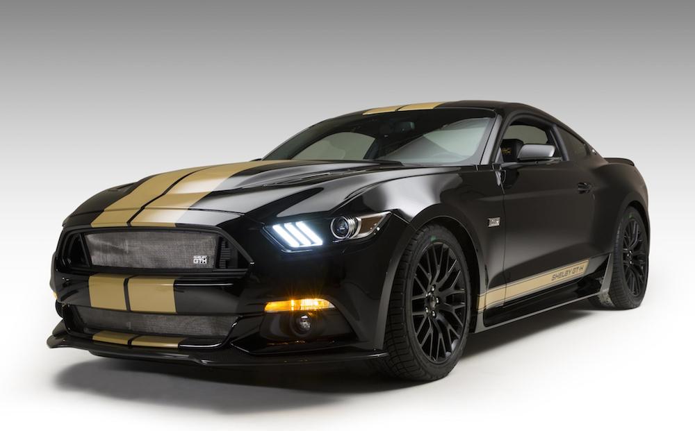 As with the original, what attracts customers to Shelby GT-H is the way it looks. The car comes with a full host of extra features, including black exterior paint with gold racing stripes, Shelby-designed vented hood, carbon fiber front splitter and rear spoiler, special badges, 19-inch aluminum wheels wearing high performance Michelin rubber, and GT-H logos on the headrestraint, sill plates and floor mats.