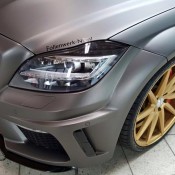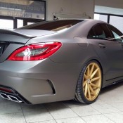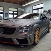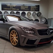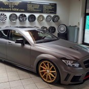 The wrap applied to this car by NRW is an interesting matte charcoal metallic complemented with gloss black as well as red accents. For the rims – 20 inch FW Design – they decided to go with a matte gold powder coating. This Prior Design Mercedes CLS 500 also gets adjusted suspension and stainless steel sport exhaust system.
