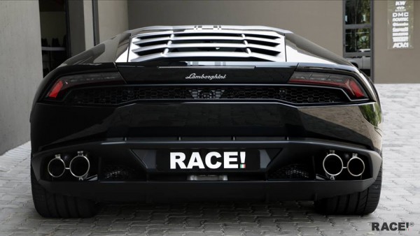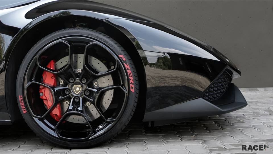 Besides the dark theme, RACE! black on black Lamborghini Huracan also features matt details with decal stripes and red tire stickers and brake calipers. The tire stickers are little things, but they do add a certain something to the whole package. They say god is in details – or is it the devil? – and this car is a case in point.