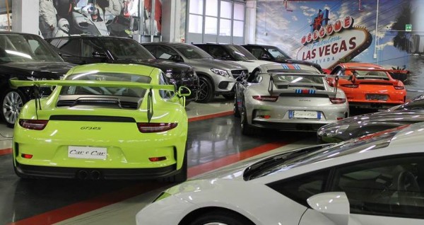 Car & Car is currently in possession of three brand-new Porsche 991 GT3 RS which they are showing off prominently in the middle of their showroom. The first one is a red example, pretty hot but nothing very special really compared to the other two. One is a gunmetal grey with Martini racing stripes, which is probably the most unique combination you can get for this car, and the other a Lime Green model which we looked at up close and personal a while ago.