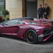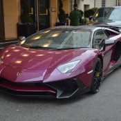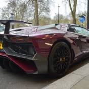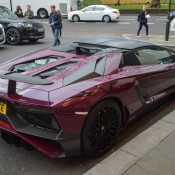 This superb Viola Ophelia Aventador SV Roadster, spotted in London, is special on a number of levels, each of which make this car one of the most desirable super automobiles money can buy. First of all, it’s an Aventador, one of the best-selling V12 super cars of all time which recently passed 5,000 units production milestone. And it’s a SuperVeloce (SV) which means it comes with a body kit, lower weight and more power than the standard version. It is also a Roadster with a removable carbon top, and last but by no means least, there’s that paint job. Amazing!