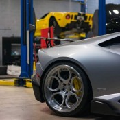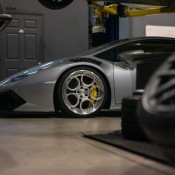 The unique ADV1 wheels on this Vorsteiner Lamborghini Huracan Novara are called ADV05C Track Spec CS and they come in sizes 20×9 inch on the front axle and 21×12.5 inch on the rear. The color is Brushed Aluminum with a mix of matte and gloss finishing which goes really well with the metallic grey of the exterior, itself complemented by the contrasting carbon fiber aero kit.