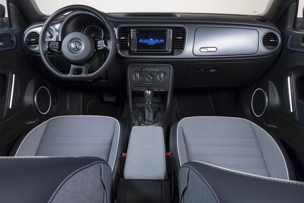 So what you get for your almost 27 grand apart from the cool name? For starters, you get two exterior color options of Pure White or Stonewashed Blue plus a unique convertible top in Dark Blue with a brand new textured fabric that resembles denim. Inside, there is light-blue-and-silver dashpad and jeans-inspired seat pockets with small Beetle flags in red, in addition to white piping and dark blue leatherette accents. So yes, the Seventies-ness of the car is really strong.