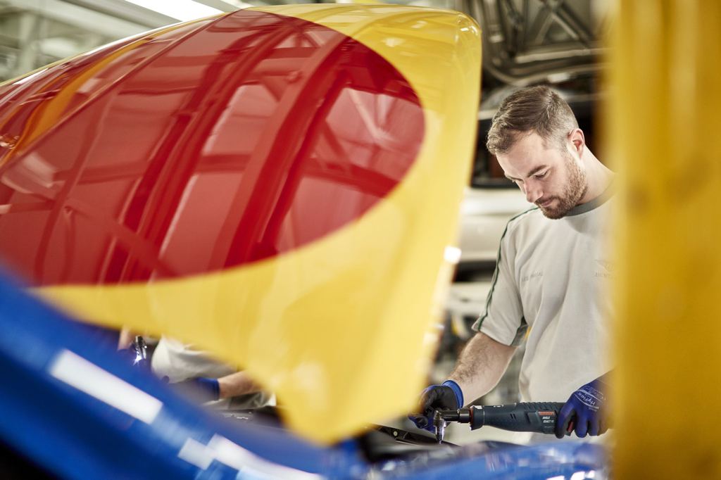 Cumbrian Green, Imperial Blue, Newmarket Tan and Hotspur are colors that make up the interior, along with a steering wheel featuring Hotspur outer rim, Newmarket Tan inner rim and Cumbrian Green centre, with Imperial Blue stitching.