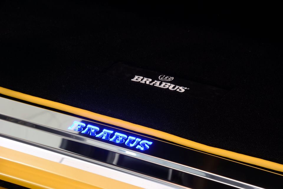 Other highlights of the Brabus G700 include a power upgrade kit for the G63’s V8 engine up to 700 Ps and a custom interior treatment which here, in accordance with the exterior theme, features yellow stitching and embroidery.