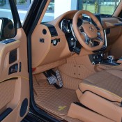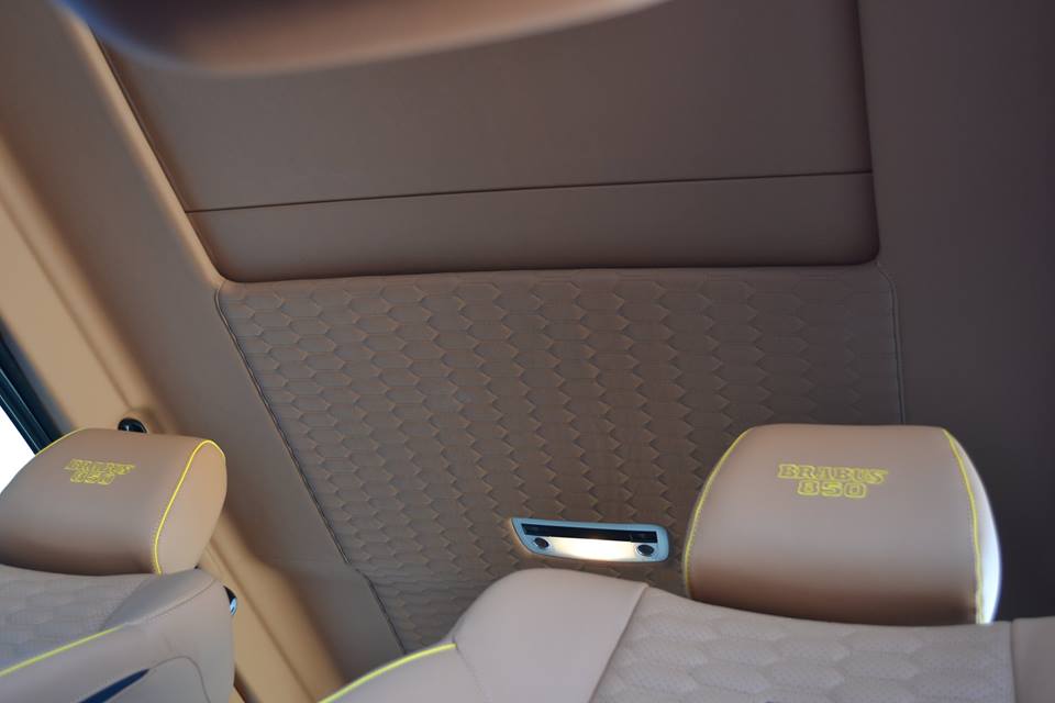 Performance-wise, Brabus Mercedes G63 850 comes with a heavily tweaked V8 engine upped by the tuner form 5.5 to 5.9 liter and equipped with, among other changes, custom turbochargers, air intakes, intercoolers, new pistons and rods, exhaust system, and Gold Heat Reflection covers. The result is 850 hp and 1,450 Nm of torque.