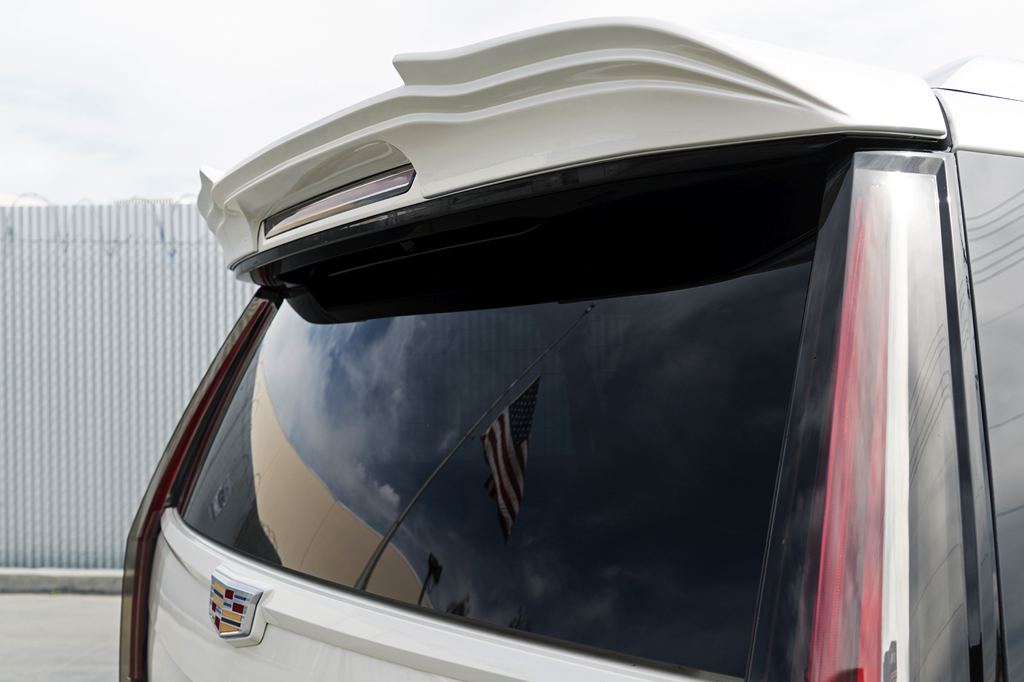 The modification games on this custom Cadillac Escalade begins with a Forgiato mesh grille with a fancy design standing proud on the nose of the SUV, complemented a few inches below by a revised front bumper that features a spoiler lip and LED lights. Fender flares, side skirts, and a diffuser-style rear bumper are among that other visual mods, before we get to the almost royal looking Forgiato ESPORRE wheels finished in brushed aluminum.