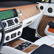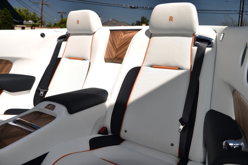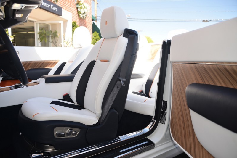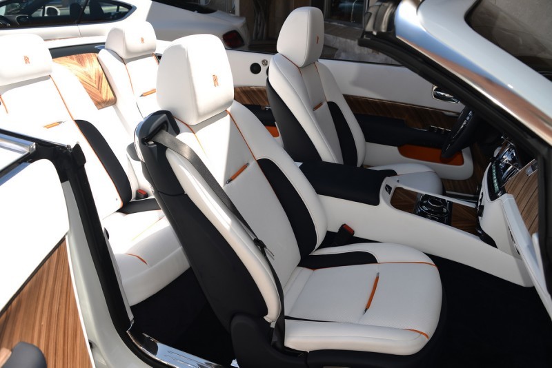 This particular Dawn boasts an Arctic White exterior with a matching interior complemented with orange accents and piping as well the nicest looking wood trims we’ve ever seen in a car. Despite the retro-cool look and feel of the car, Rolls-Royce Dawn features the latest safety and connectivity technologies such as a widescreen satnav and a main rotary control with ‘pull and pinch’ function, active cruise control, Satellite Aided Transmission, radar, camera, and…