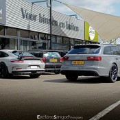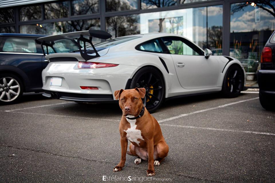 Okay, before you jump to conclusions about the owner of this magnificent Fashion Grey Porsche 991 GT3 RS, we have to point out that cool pitbull is not really his dog and it’s not really guarding the car. The dog, named Mocca, belongs to the spotter who snapped the car.