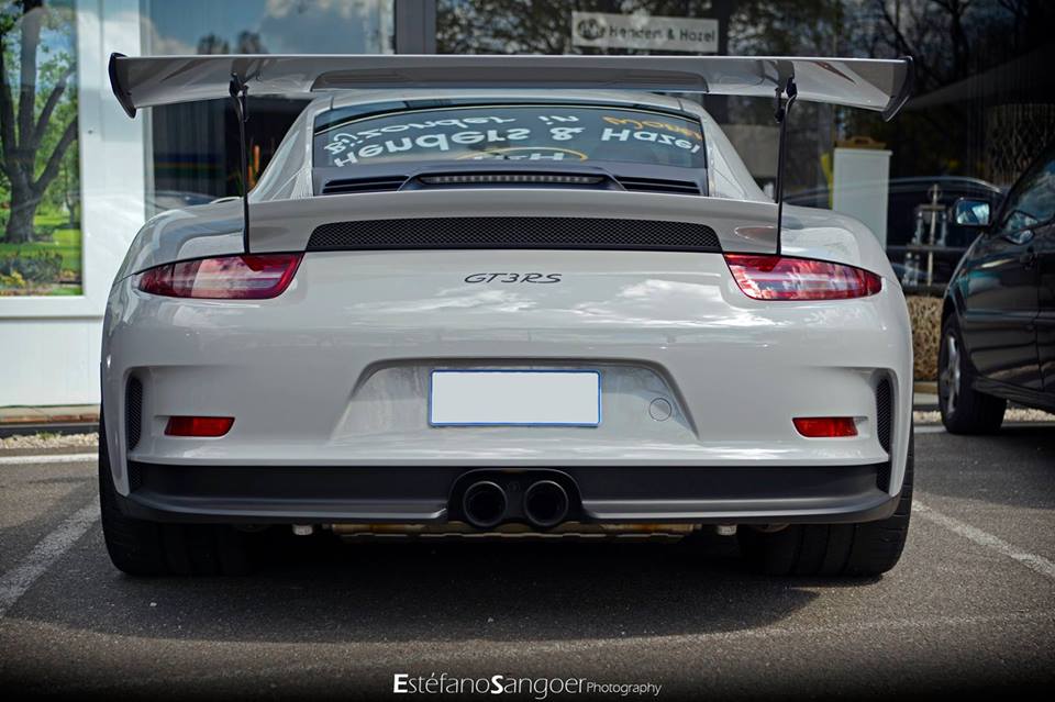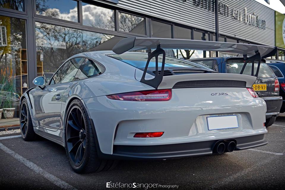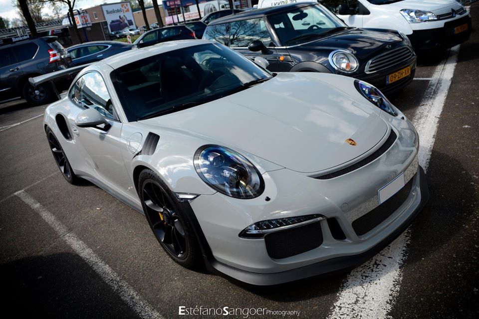 It’s a great combination though, isn’t it? And we don’t think there’s anything wrong with leaving your dog out with your exotic car to make sure nobody vandalizes it. Anyway, the main feature of this post is not the dog but the Fashion Grey Porsche 991 GT3 RS, yet another ‘Exclusive’ color on this most desirable of modern Porsches.