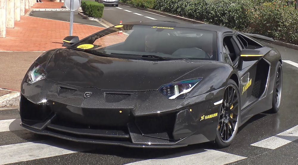 The unique shape of Hamann Aventador Zentenario styling kit, and the fact that it’s all naked carbon, sets this Lamborghini apart from the other million Aventadors knocking about Monaco. It also sounds quite dramatic: