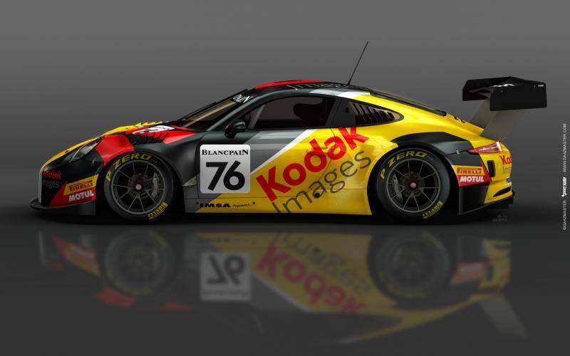 That is Blancpain Endurance GT series grid mainly, but also 24 Hours of Le Mans and other international endurance championships. The one-of-a-kind livery of the IMSA Porsche 911 GT3 R which makes such as amazing thing to look at is inspired by the colors of the team’s main sponsor, which is Kodak Images. Although, it has to be said, the unique deign of the GT3 R with its wide fenders and massive aero kit also plays a major part.
