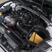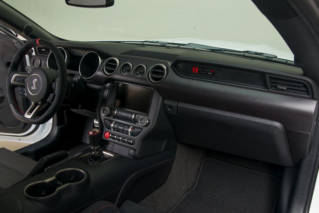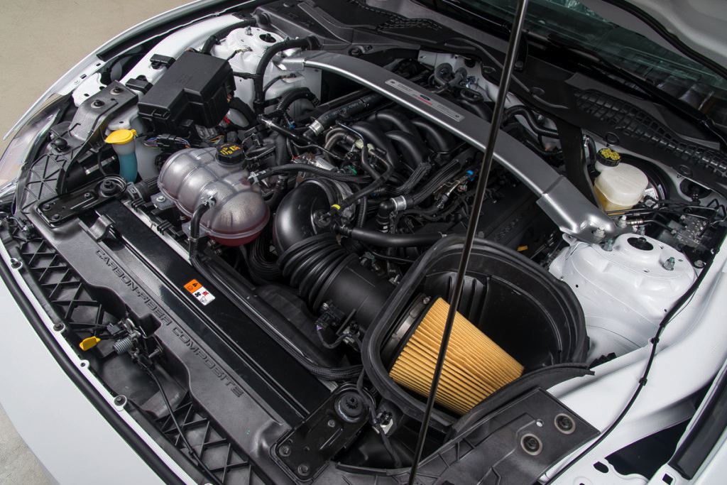 The critical letter here is that ‘R’ at the end of the car’s name. That means this souped-up Mustang features motorsport-derived goodies such as larger splitter and rear wing, Torsen limited-slip differential with a 3:73 axle ratio, 19” wheels, MagneRide suspension, driver-selectable vehicle modes, a shock-tower brace, heavy-duty front springs, and… The engine is a 5.2-liter flat-plane crank V8 with 540 horsepower.