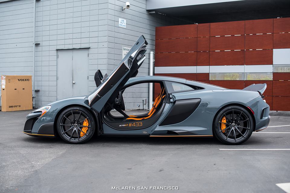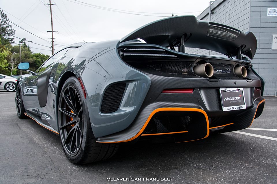 Delivered to McLaren San Francisco, the pinstriped McLaren 675LT is finished in Chicane Grey which is one of the coolest paint jobs the LongTail comes in. When it came to speccing the car up with MSO (McLaren Special Operations) options though, whoever ordered the cat evidently didn’t want anything too fancy and so steered clear of silly liveries and two-tone paint works and contented himself with McLaren Orange pinstripes on the aero parts.