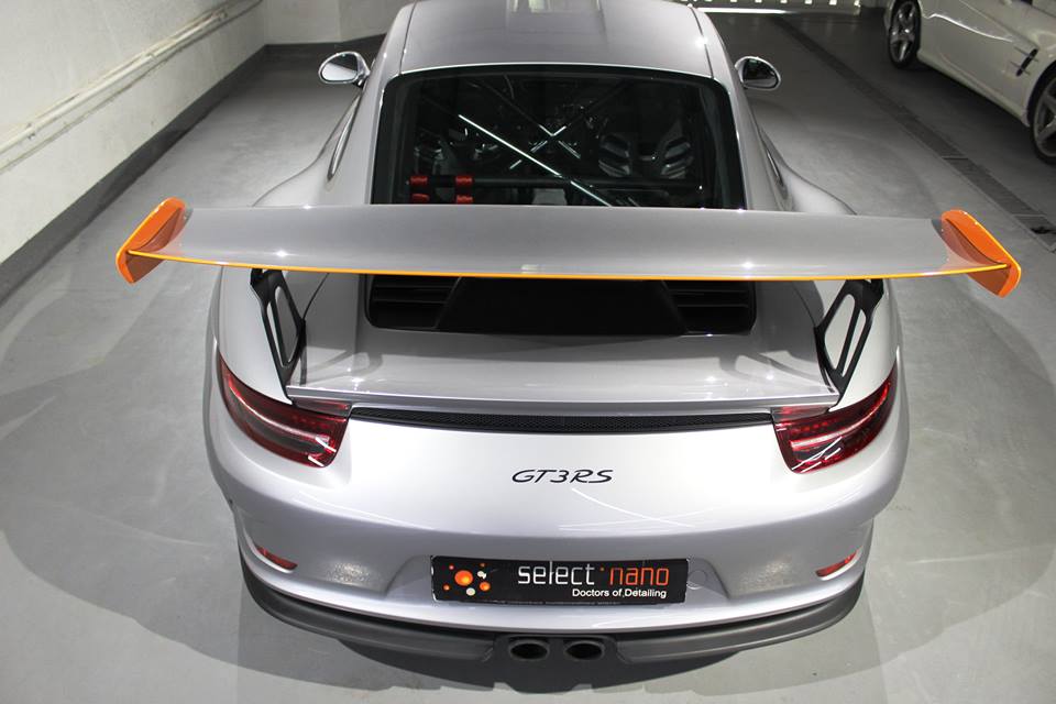 That said, this Porsche 991 GT3 RS benefits from a paint protection treatment as well which gives it classy silver finish a matte sort of look. It goes well with the orange twist bits and also other subtle touches such as the blacked-out wing struts which is something pretty much all RS owners are doing these days. Porsche should address that in the next batch of production cars.