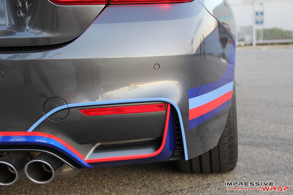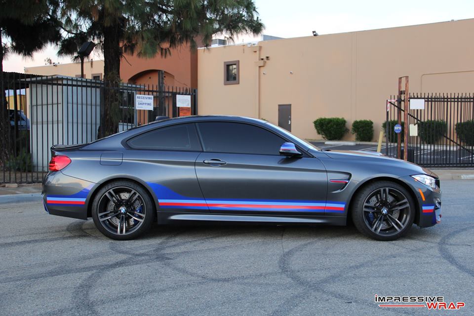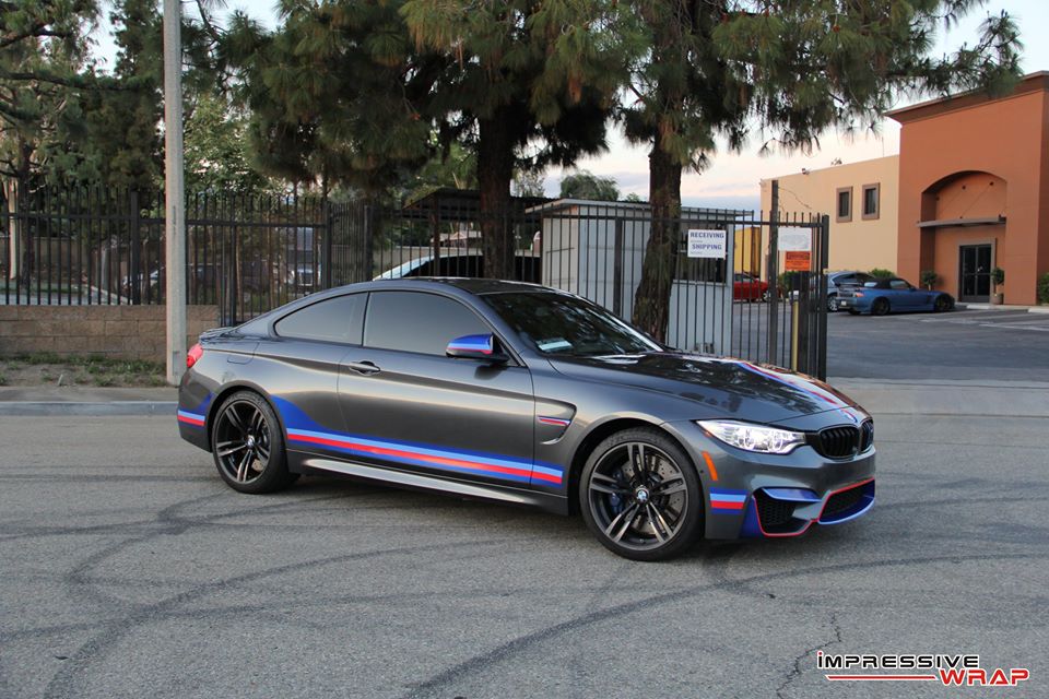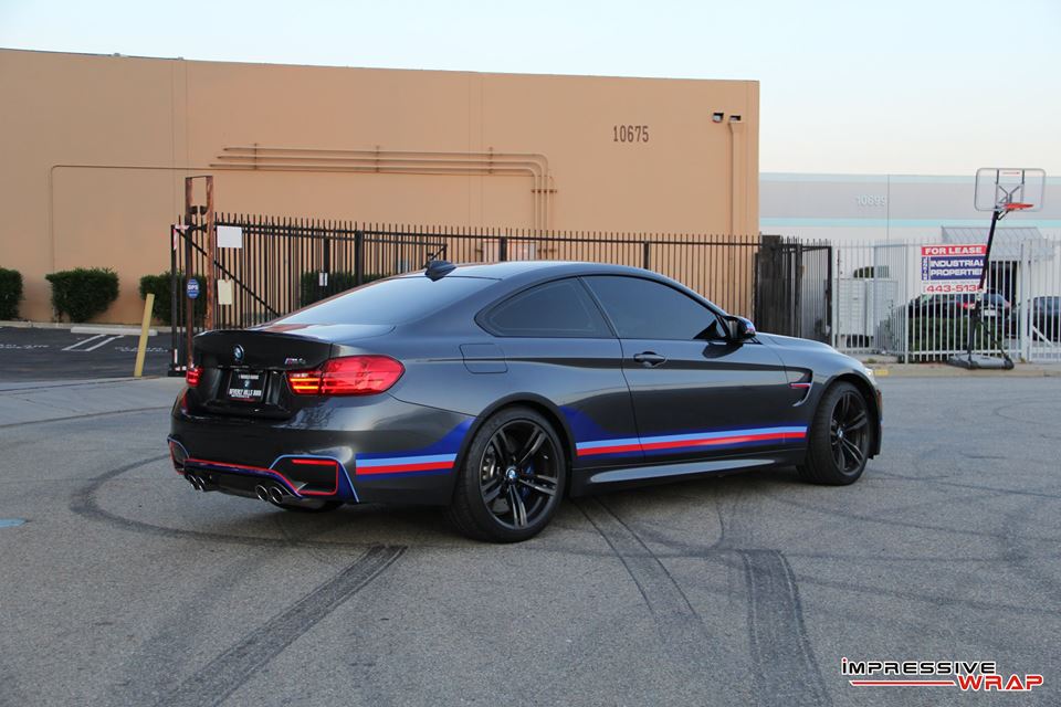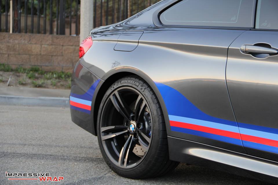 All that said, we have to admit BMW M4 is so good looking, not even these massive M stripes can completely ruin its handsomeness. They make it a lot less cool, no doubt. But it’s still a handsome car, especially with those black wheels. If you like to get your Bimmer this look, holla at Impressive Wrap.
