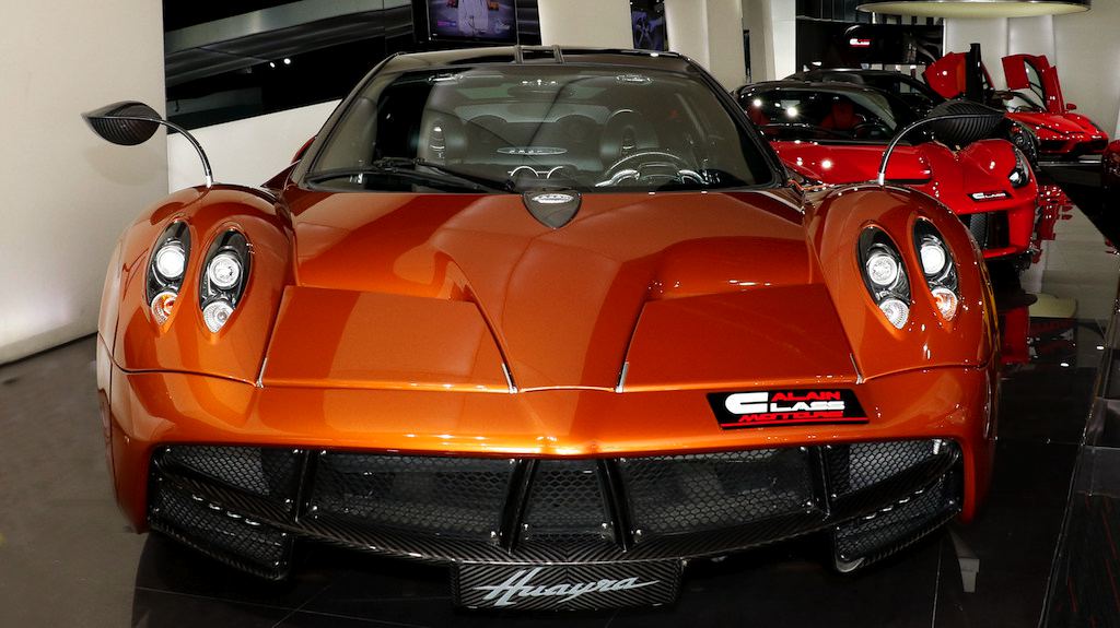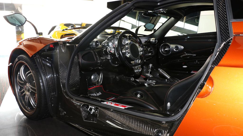 This car apparently fills the gap left in the showroom after Alain sold this stunning Blue Huayra. If anything, this one looks more interesting seeing as we have’t seen this color on any other Huayra. It may have been used for some rare editions of the Zonda, but this Orange Carbon Pagani Huayra is almost certainly the only one of its kind in this color.