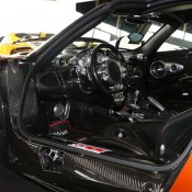 It’s not going to be easy focusing on the Pagani what with all those hyper cars in the backgroud (including Bugatti Veyron, Porsche 918, LaFerrari, Koenigsegg CCX, Ferrari Enzo, Aston Martin One-77, and…) but we invite to have a canter through the photos of the beauty that is the Orange Carbon Pagani Huayra in this gallery. You should probably first put a napkin on your lap though, since you are definitely going to drool uncontrollably.