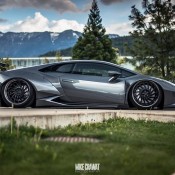 The wheels for this project have come from R3 Wheels and they are supported by Accuair air suspension system, while HP Drivetech was charged with the job of performance upgrades. This is about as crazy as you can go with a Huracan without making un-drivable. But some may argue it could use a wrap or some stripes.