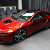 BMW i8, as you may know, comes only in a number of fairly dull colors. If you want something more vibrant you are going to have to go through the Individual program… or take a trip to Abu Dhabi. These guys are showing off another one of their custom Bimmers, this time a Lava Red BMW i8.