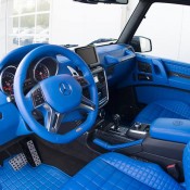 The interior design is what sets this Brabus Mercedes G500 4×4 apart from the run-of-the-mill models and makes it something worthy of closer inspection. The main highlight of this bad boy in side the cabin is a healthy dose of blue leather which covers the seats, dashboard, consoles, arm rests, door cards, transmission tunnel, steering wheel, pillars… pretty much every visible surface.
