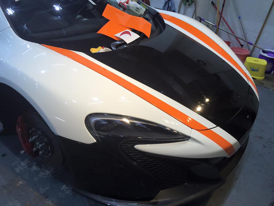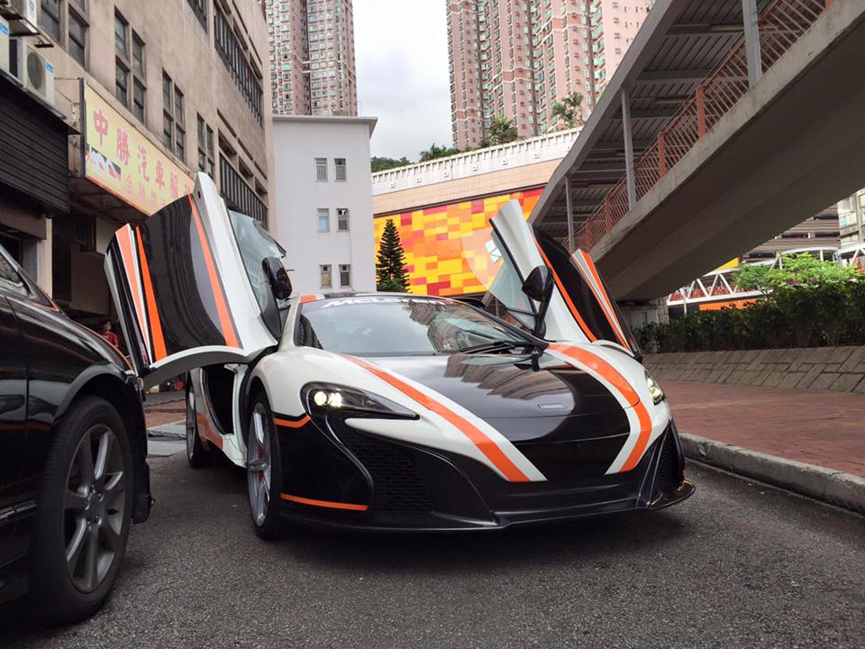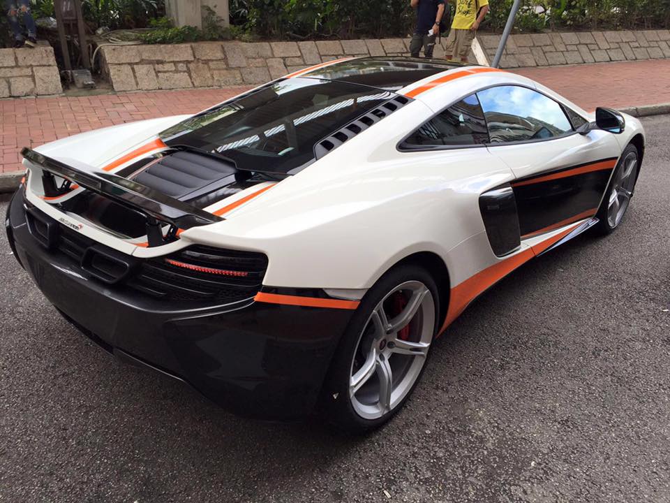 And here it is, this one inspired by the livery of Garage 59’s McLaren 650 GT3 competing in the Blancpain GT Series. Residing now at McLaren Hong Kong’s showroom, this specially-wrapped McLaren 650S features gloss black film covering parts of the bumpers, aero parts, bonnet, roof, and the rear wing as well the doors and mirror caps. A series of bright orange stripe complement the black stuff and give the car a pretty close look to the actual racing car pictures below.