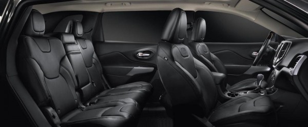 The upgrades making Jeep Cherokee Overland the top-of-the-line model inside the cabin include powered Nappa leather ventilated and heated driver and front passenger seats with four-way lumbar adjustment, memory driver’s seat and mirrors, a new steering wheel with wood insert, anodized silver bezels and vent surrounds, and Berber floor mats. You can also choose the color of the leather between Morocco Black and Pearl.