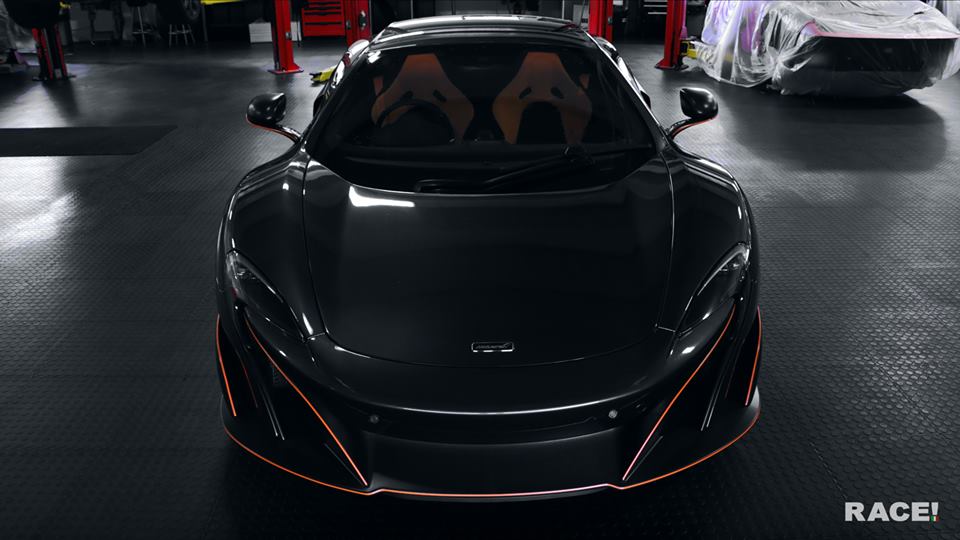 So McLaren 675LT by RACE! gets before anything else a matte clear coat which makes the whole thing look stealthy and cool. But there’s more to it, as they have also wrapped the roof and some other elements in gloss black. The contrast between the gloss and matt parts is subtle, but it has resulted in a very classy look.