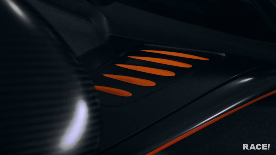 But the biggest highlight of this LongTail is all the orange pinstriping and details applied to strategic places on the body to set off the dark color and accentuate its unique aero kit. With these few simple changes RACE! has managed to improve the styling of the LT a great deal. And it’s a theme that matches that of the interior.